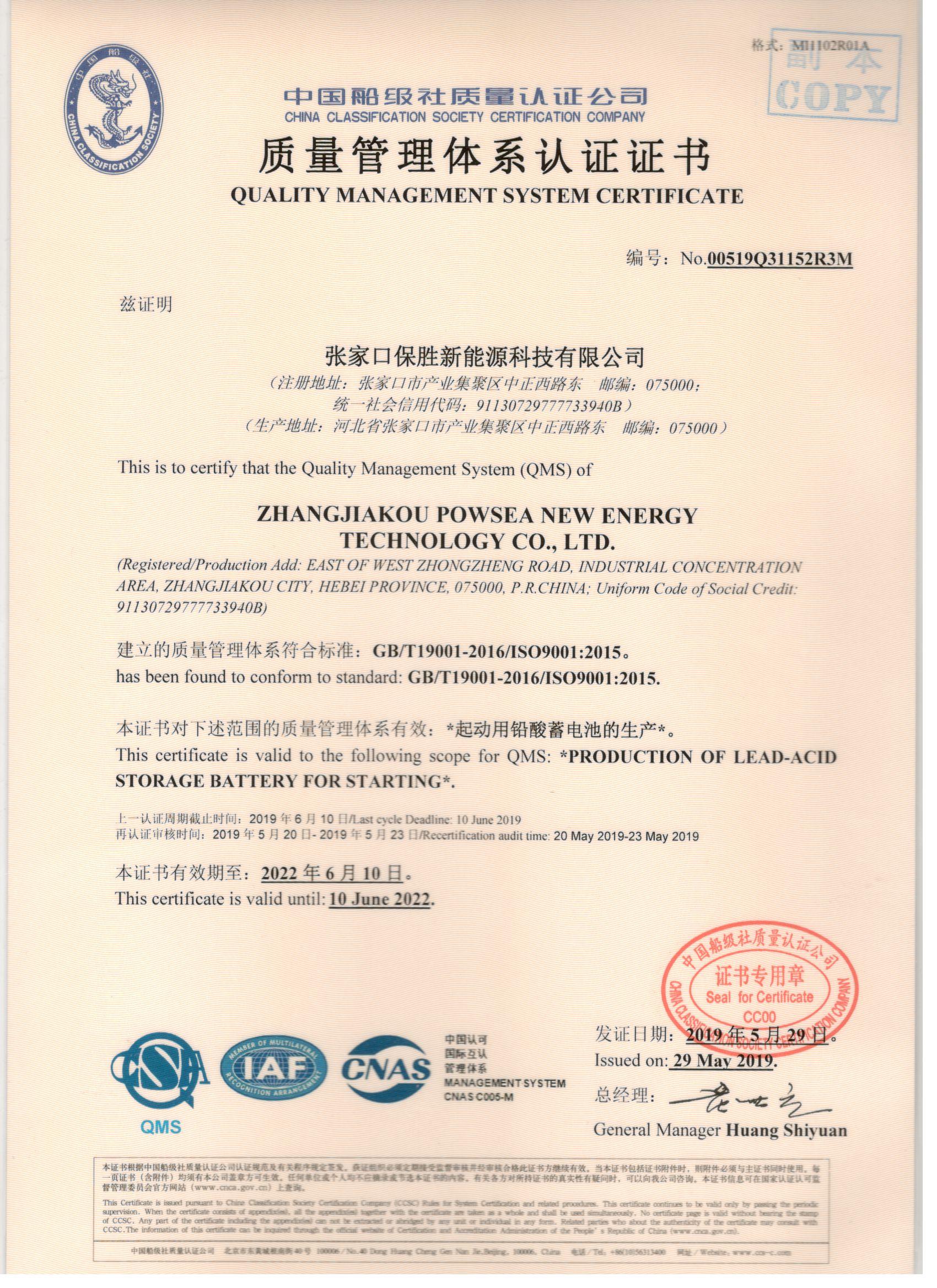 Powsea New Energy Technology Company > ENGLISH > About us > Qualification honor >